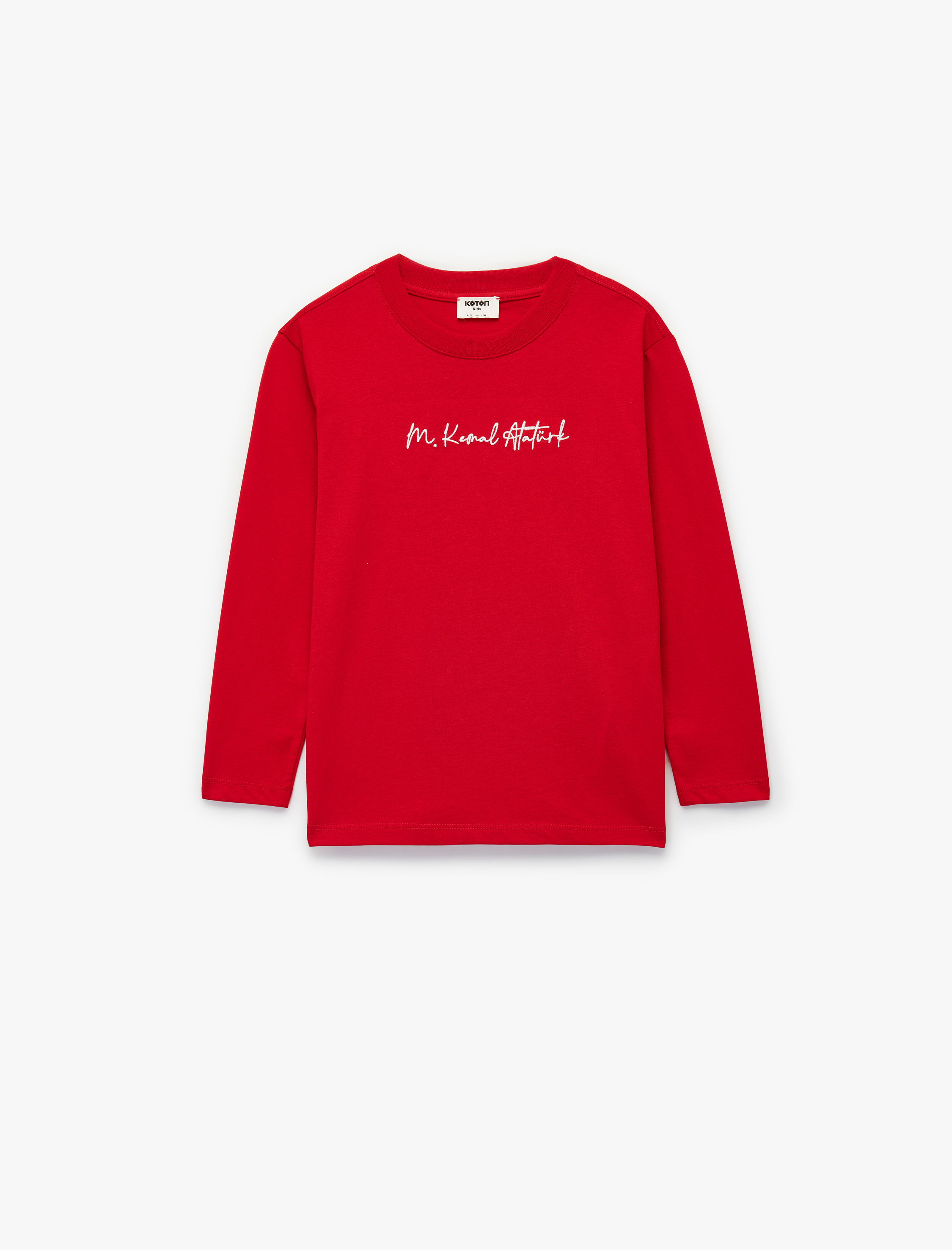 Erkek Çocuk Atatürk Nakışlı Pamuklu Uzun Kollu Bisiklet Yaka Tişört