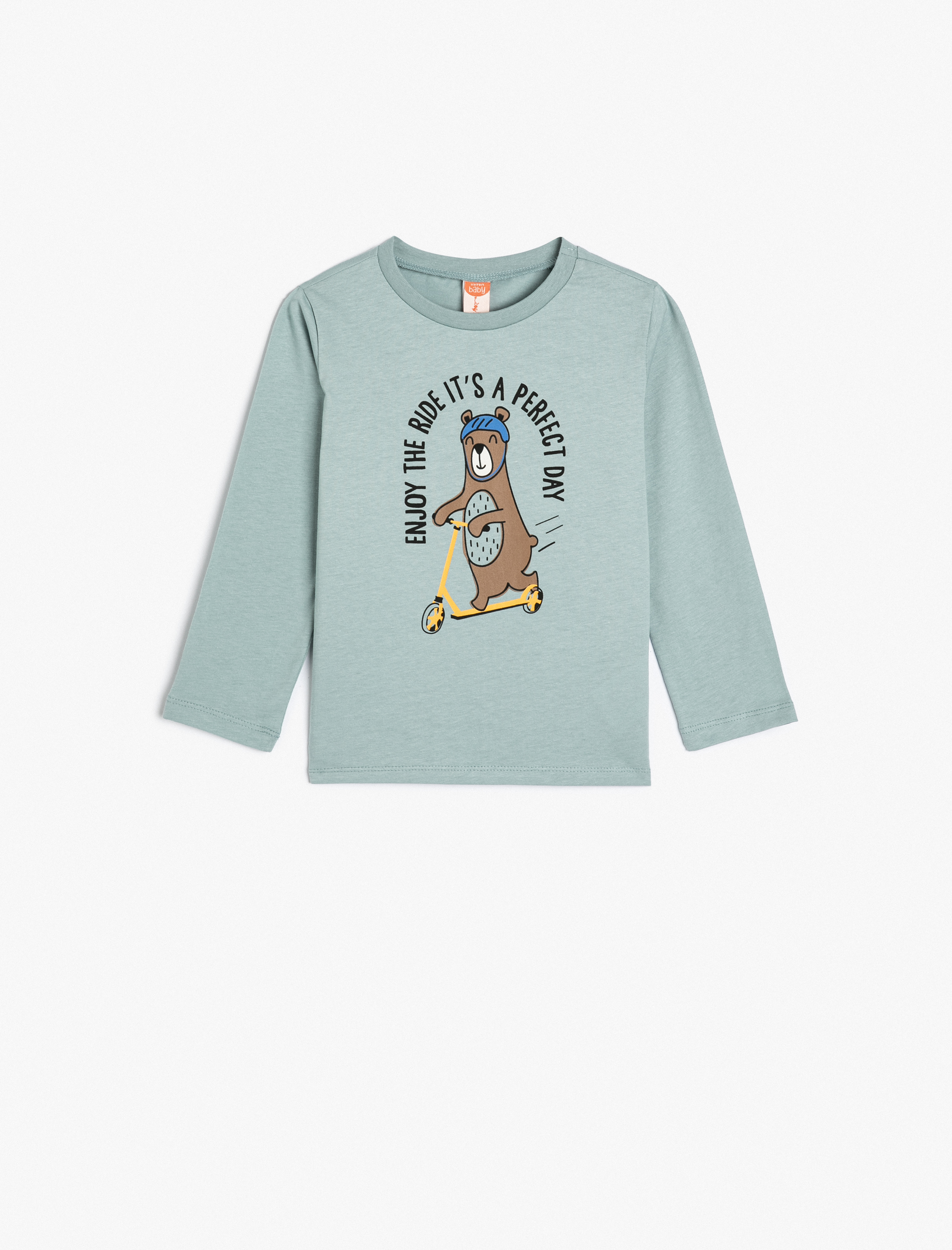 Bear printed detail, long sleeve, crew neck, cotton t-shirt.With this outfit, your baby is safe. Our products are tested against chemicals and designed mechanically in compliance with all safety principles. They do not contain dyestuff and heavy metals which may be damaging for health or any small and sharp pieces, straps or laces that may be ingested.