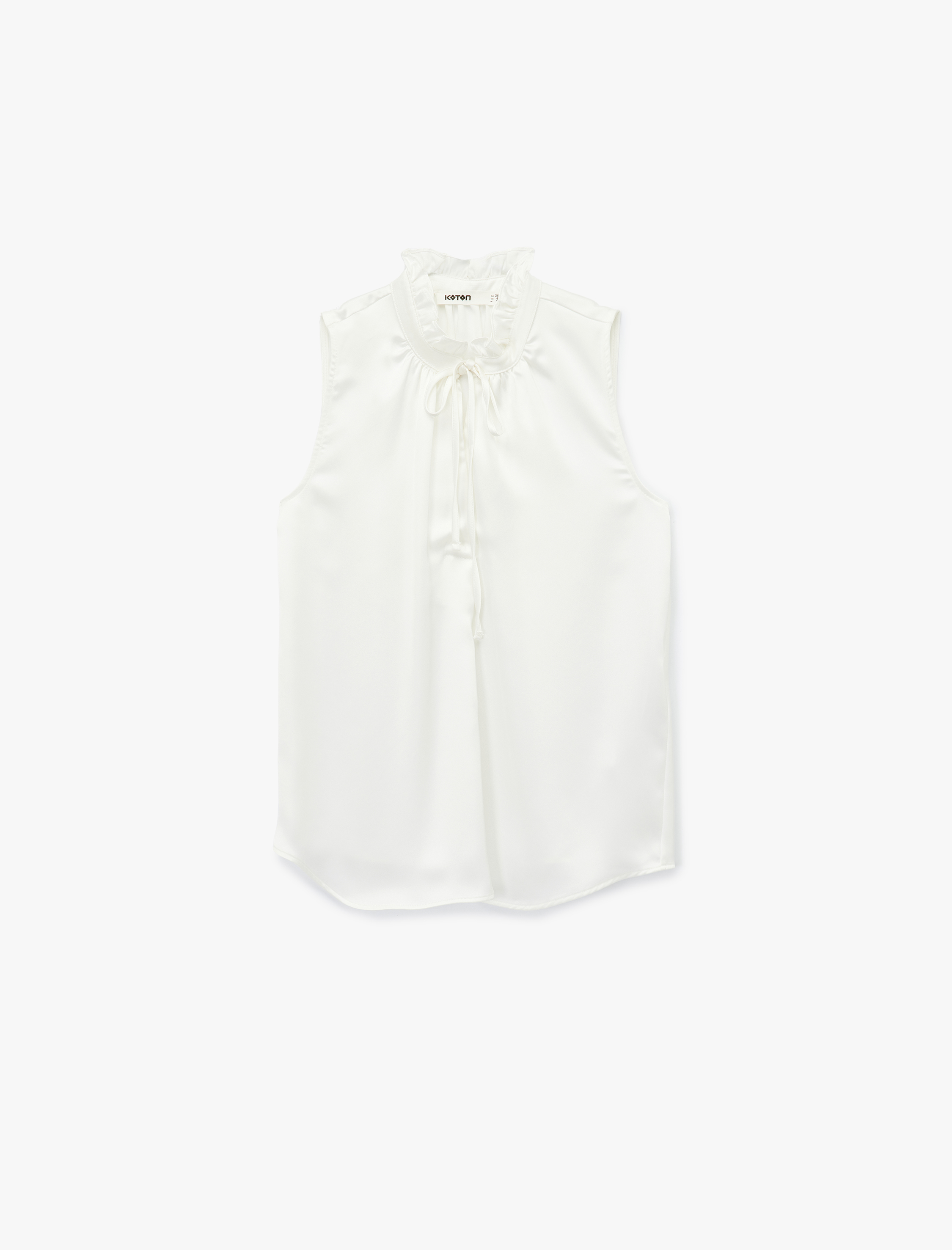 Bağlama Detaylı Dik Fırfırlı Yaka Kolsuz Gömlek
