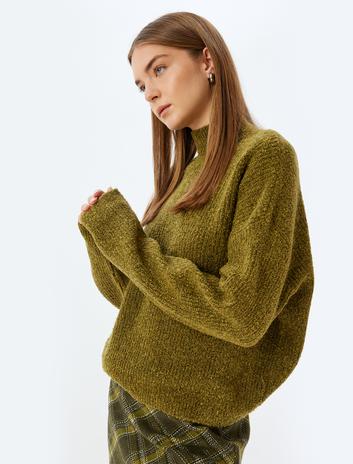 Basic Triko Kazak Hafif Dik Yaka Fitilli