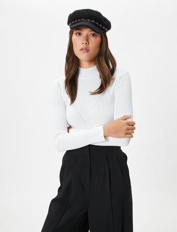 Triko Boğazlı Kazak Uzun Kollu Fitilli Kaşmir Dokulu