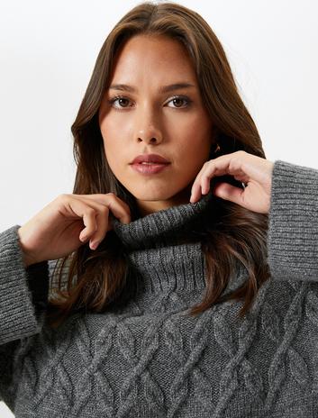 Koton X Şahika Ercümen - Saç Örgüsü Motifli Yarım Balıkçı Yaka Kazak Sepete Ekle