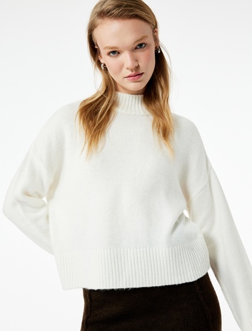 Koton X Zeynep Bastık - Uzun Kollu Slim Fit Boğazlı Triko Crop Kazak