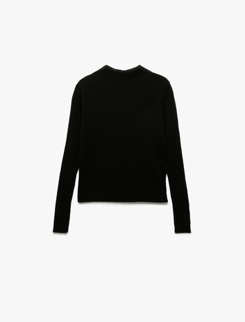 Dik Yaka Dikiş Detaylı Uzun Kollu Basic Triko Kazak