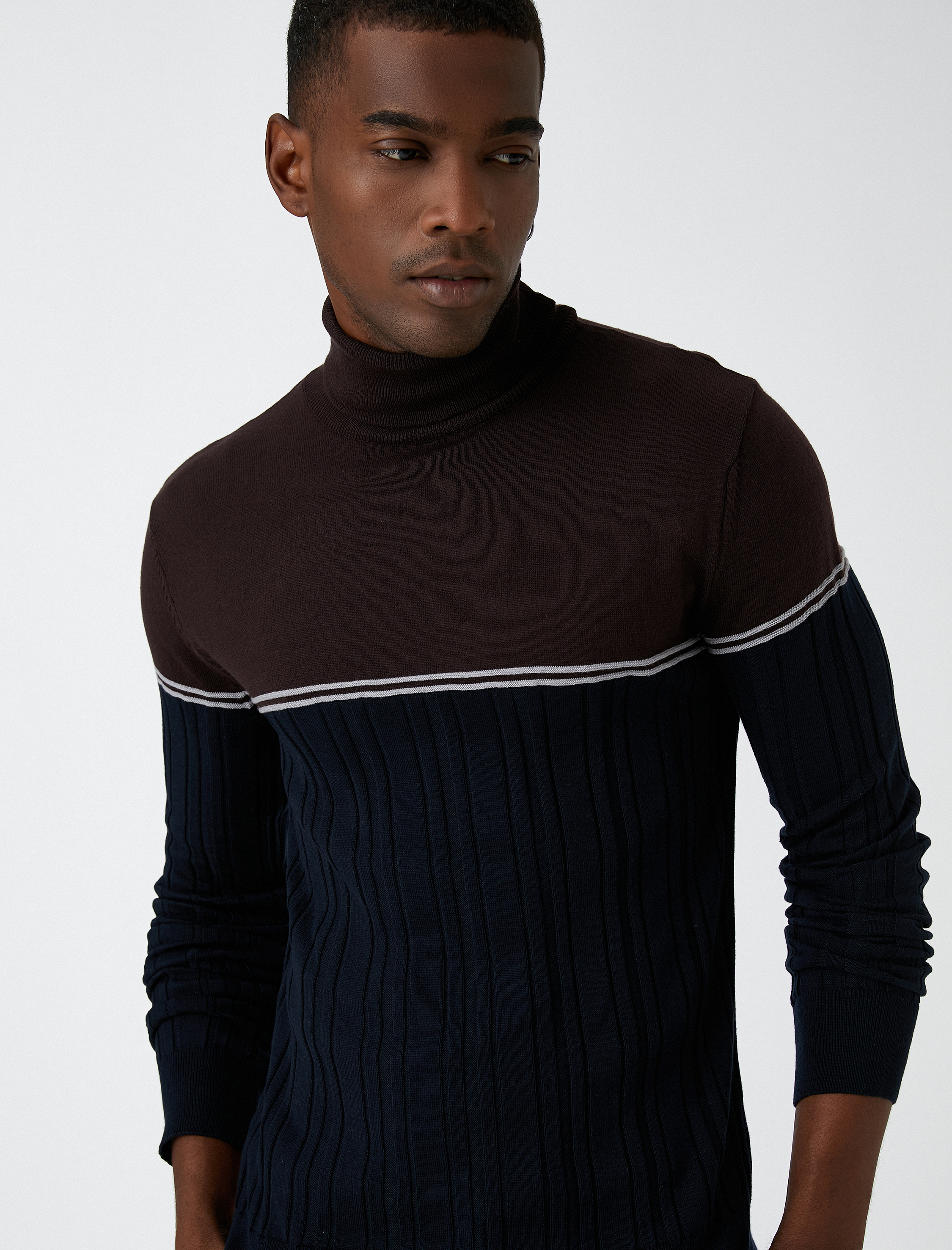 Balıkçı Yaka Triko Kazak Renk Bloklu