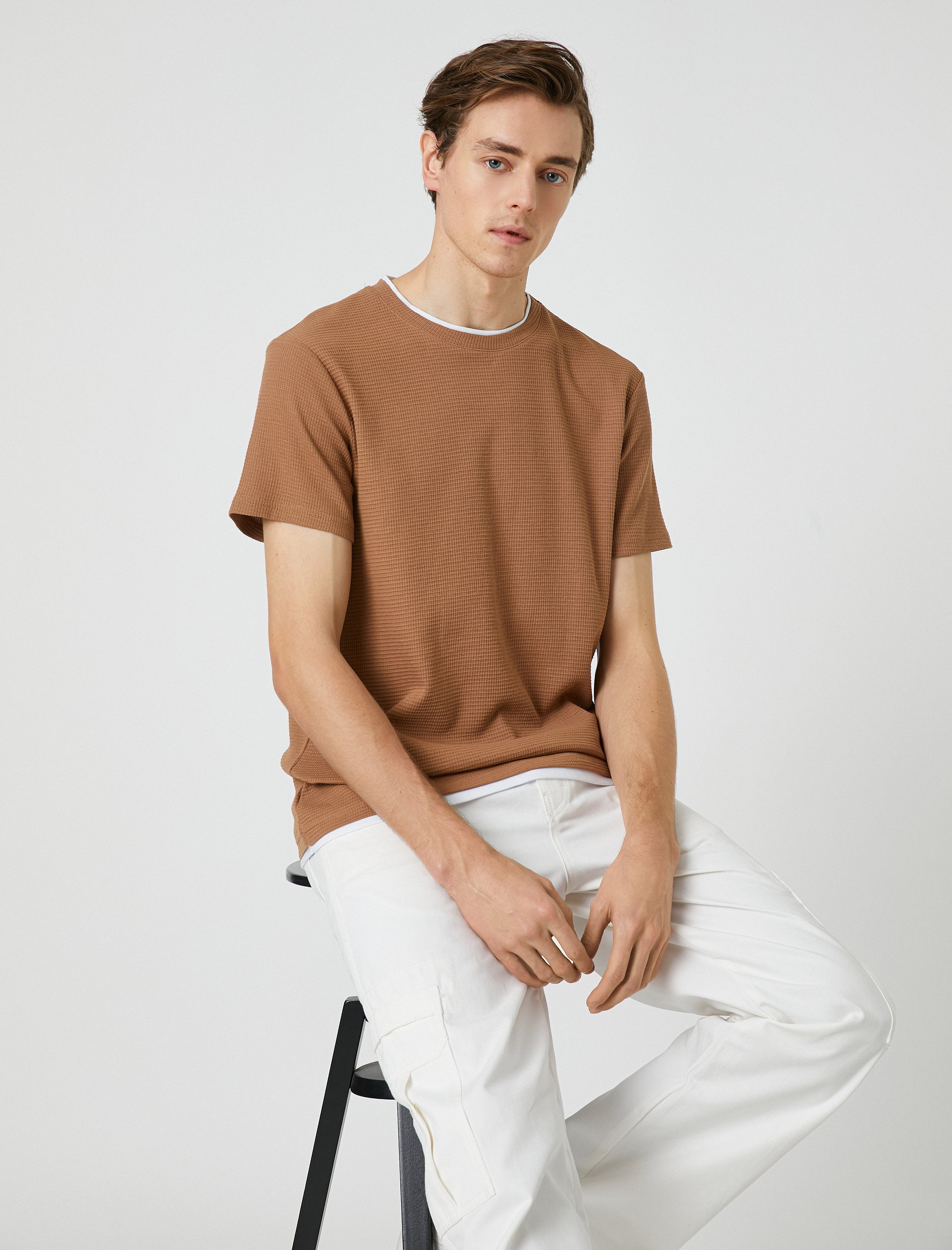 Basic Dokuma Tişört Bisiklet Yaka Kısa Kollu Dar Kesim