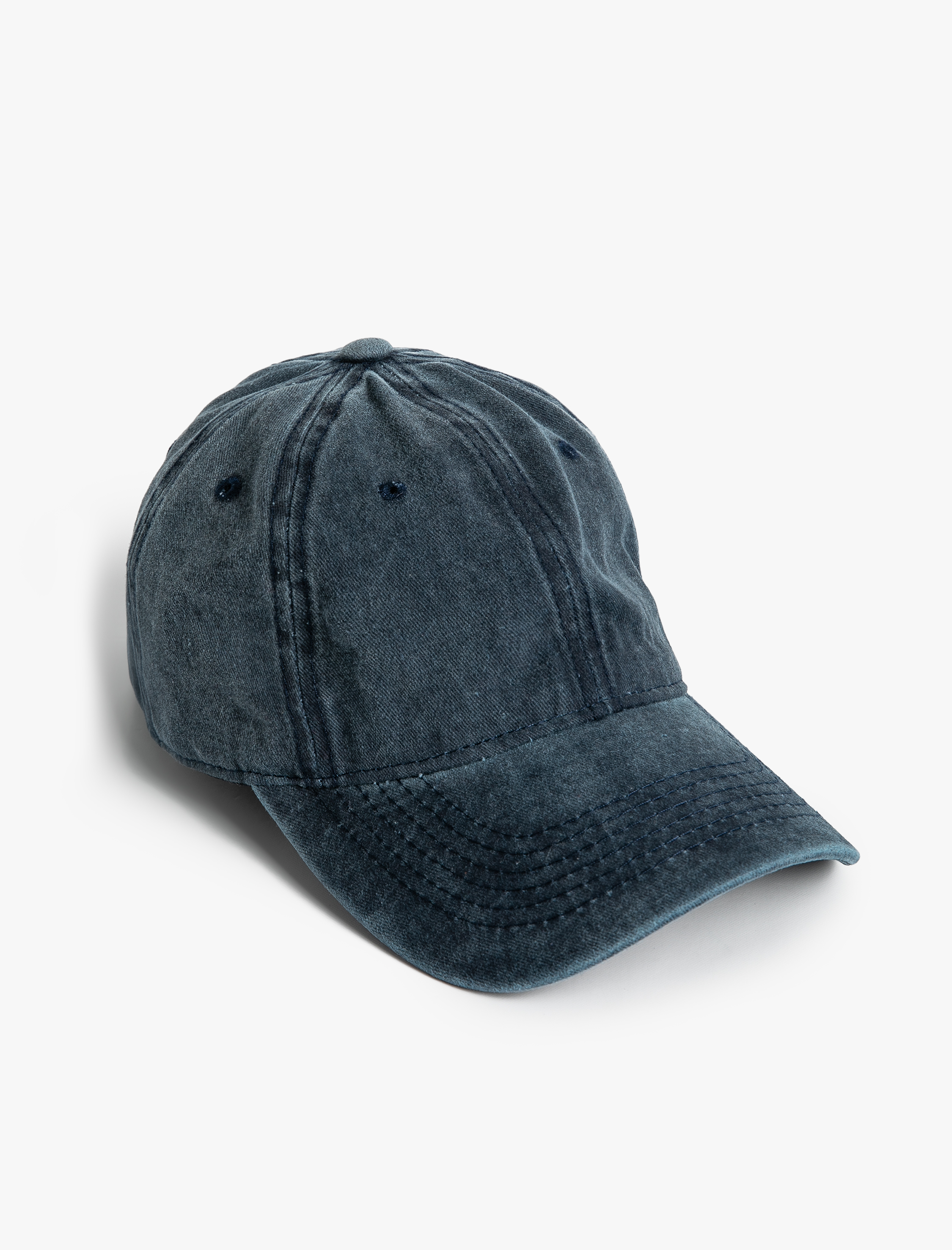 Eskitme görünümlü, dikiş detaylı basic kep şapka.