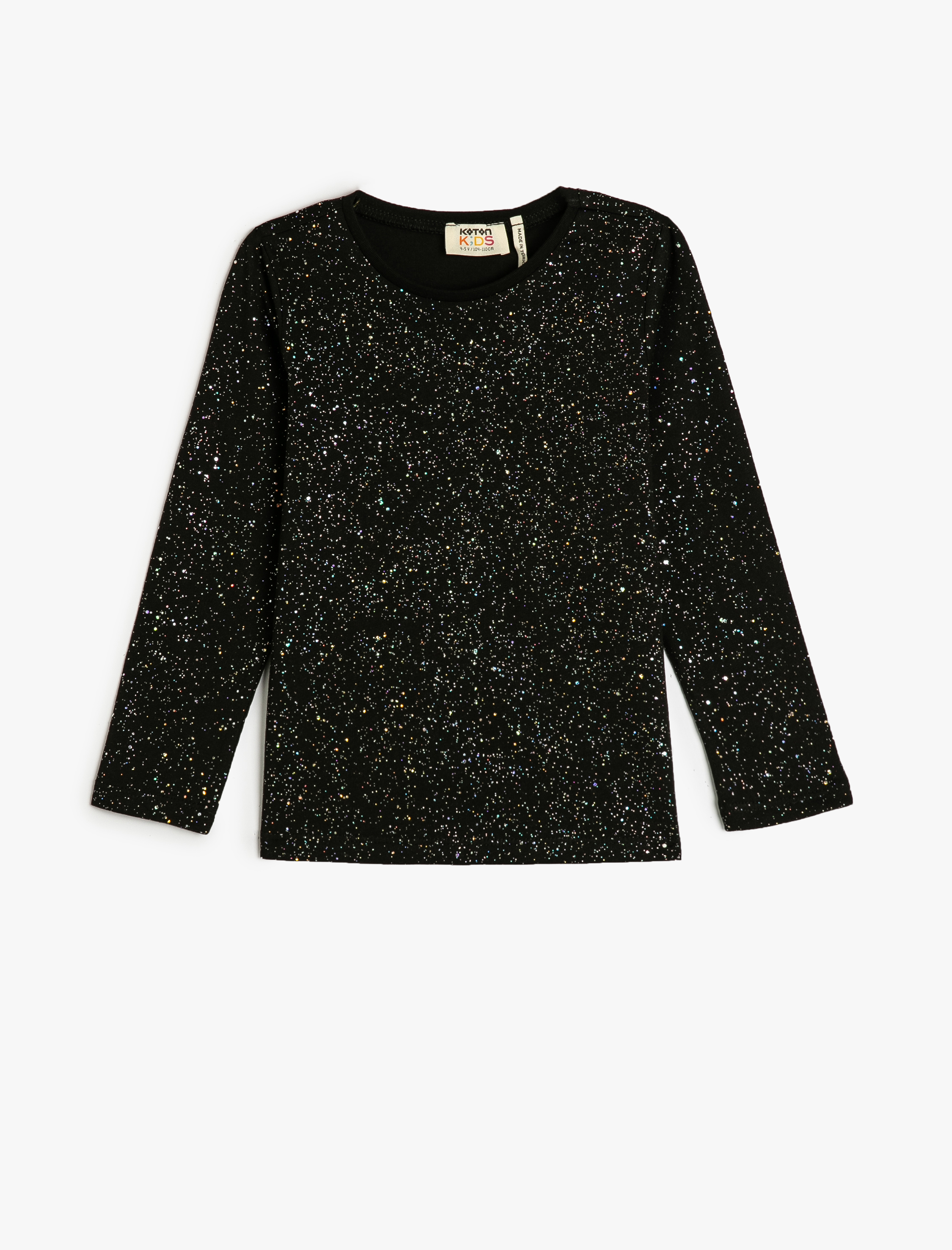 Uzun kollu tişörtler çocuklar için gardırobun olmazsa olmaz parçaları arasında yer alıyor. Uzun kollu, basic, bisiklet yaka, simli tişört minik kızların kış stilini tamamlıyor.