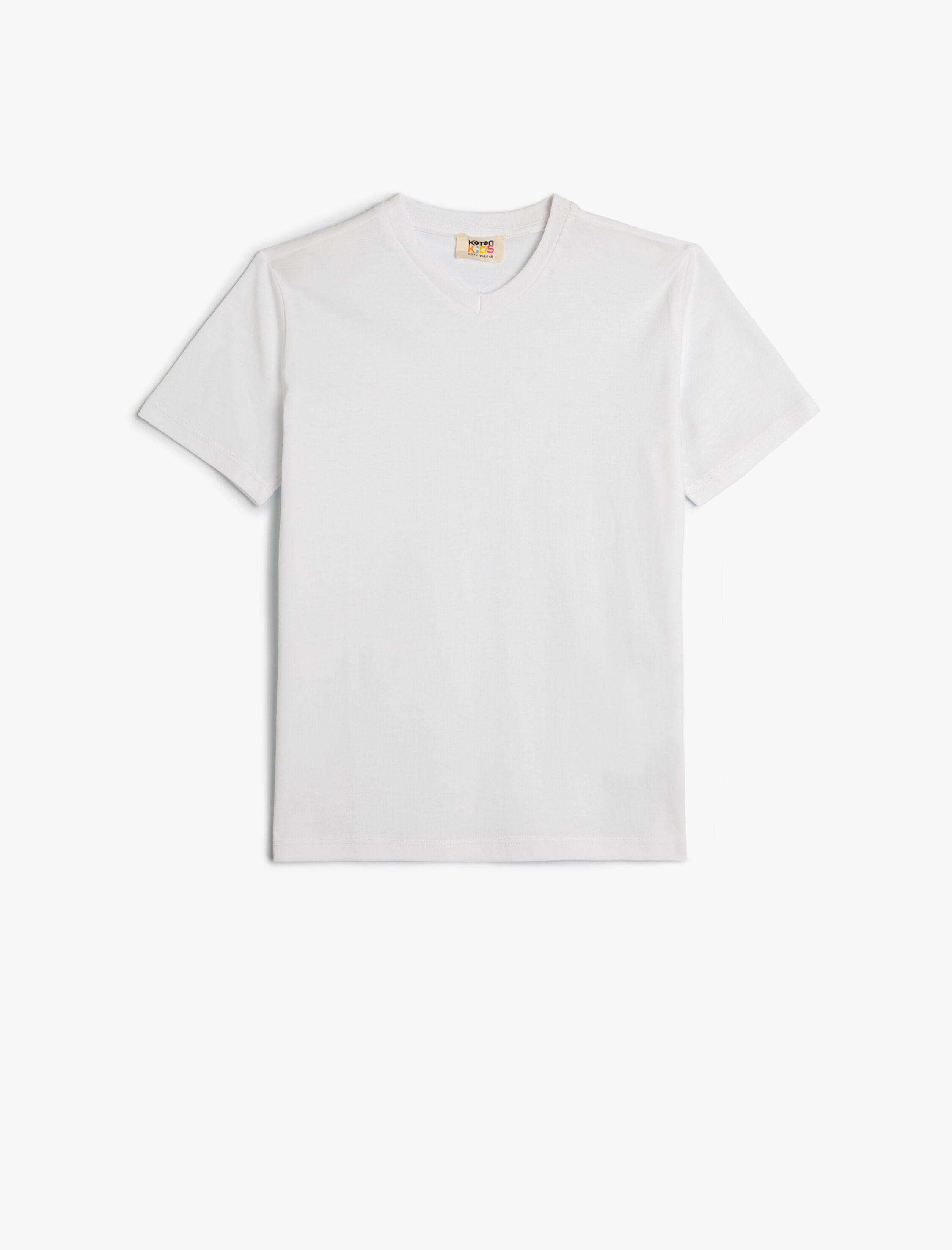 Erkek Çocuk Basic Tişört Kısa Kollu V Yaka Pamuklu