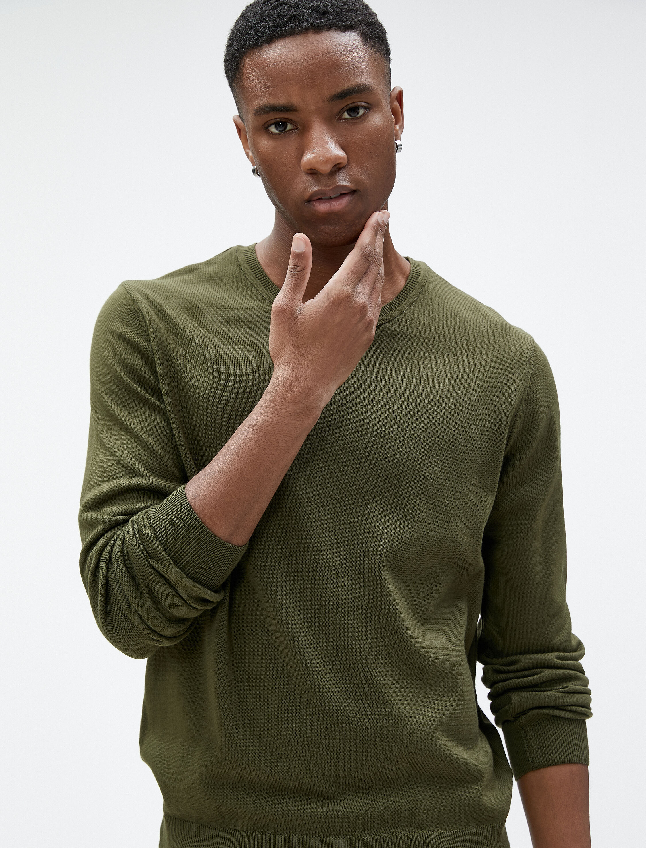 Basic Triko Kazak Bisiklet Yaka Dar Kesim Uzun Kollu