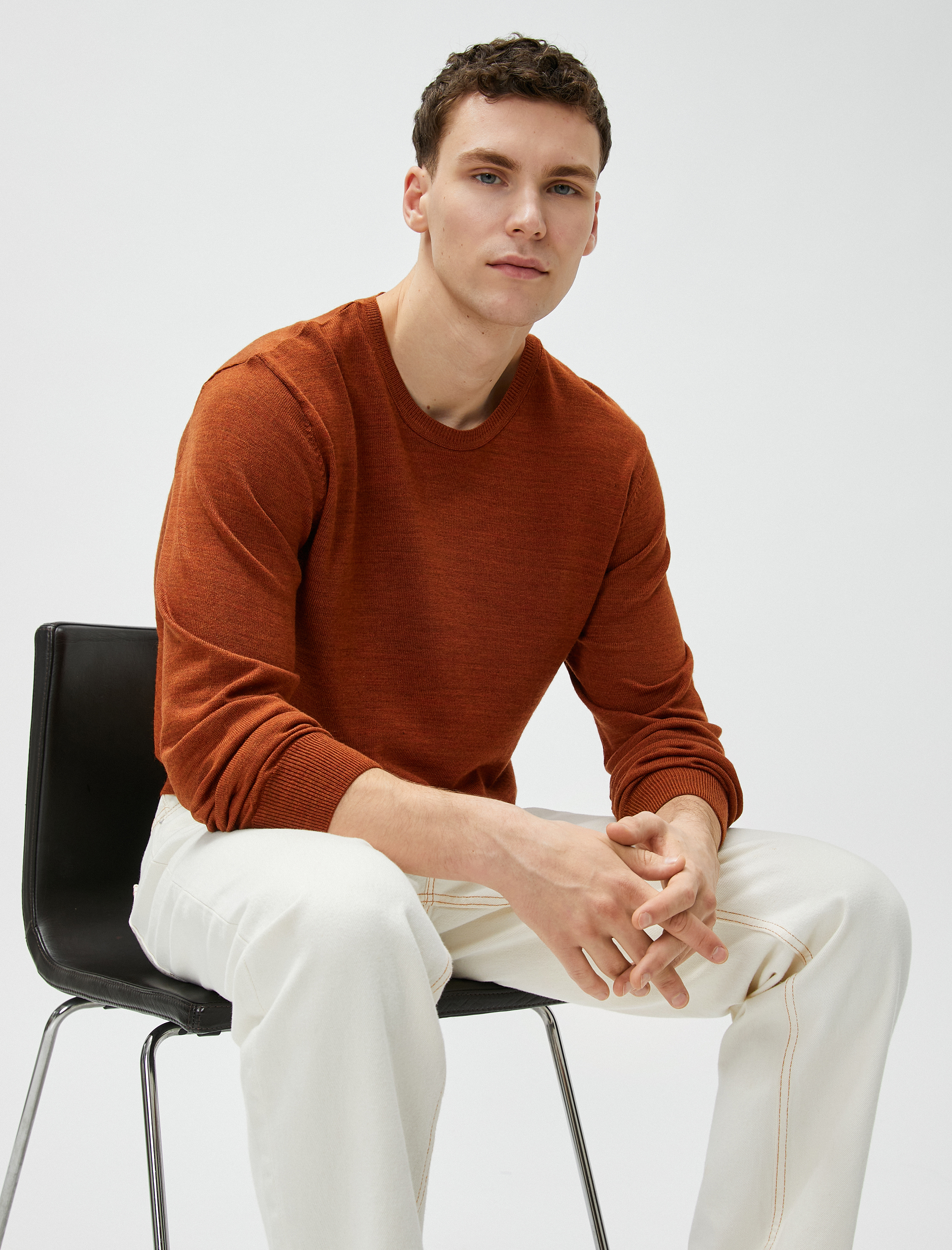 Basic Triko Kazak Bisiklet Yaka Dar Kesim Uzun Kollu