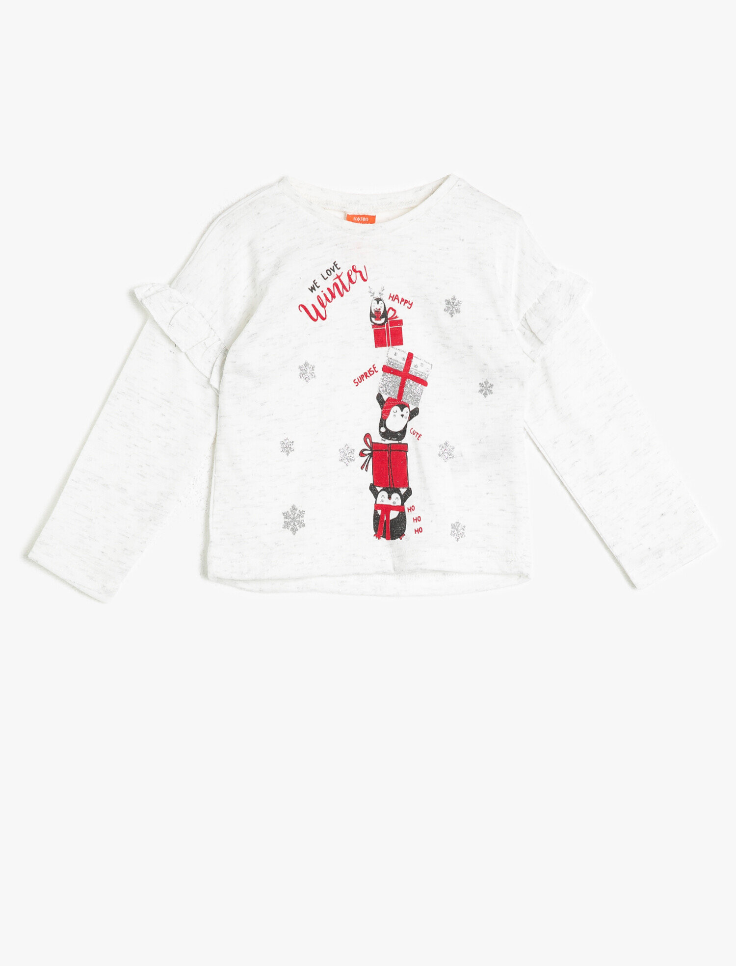 Kız Bebek Baskılı Bisiklet Yaka Uzun Kollu Tişört