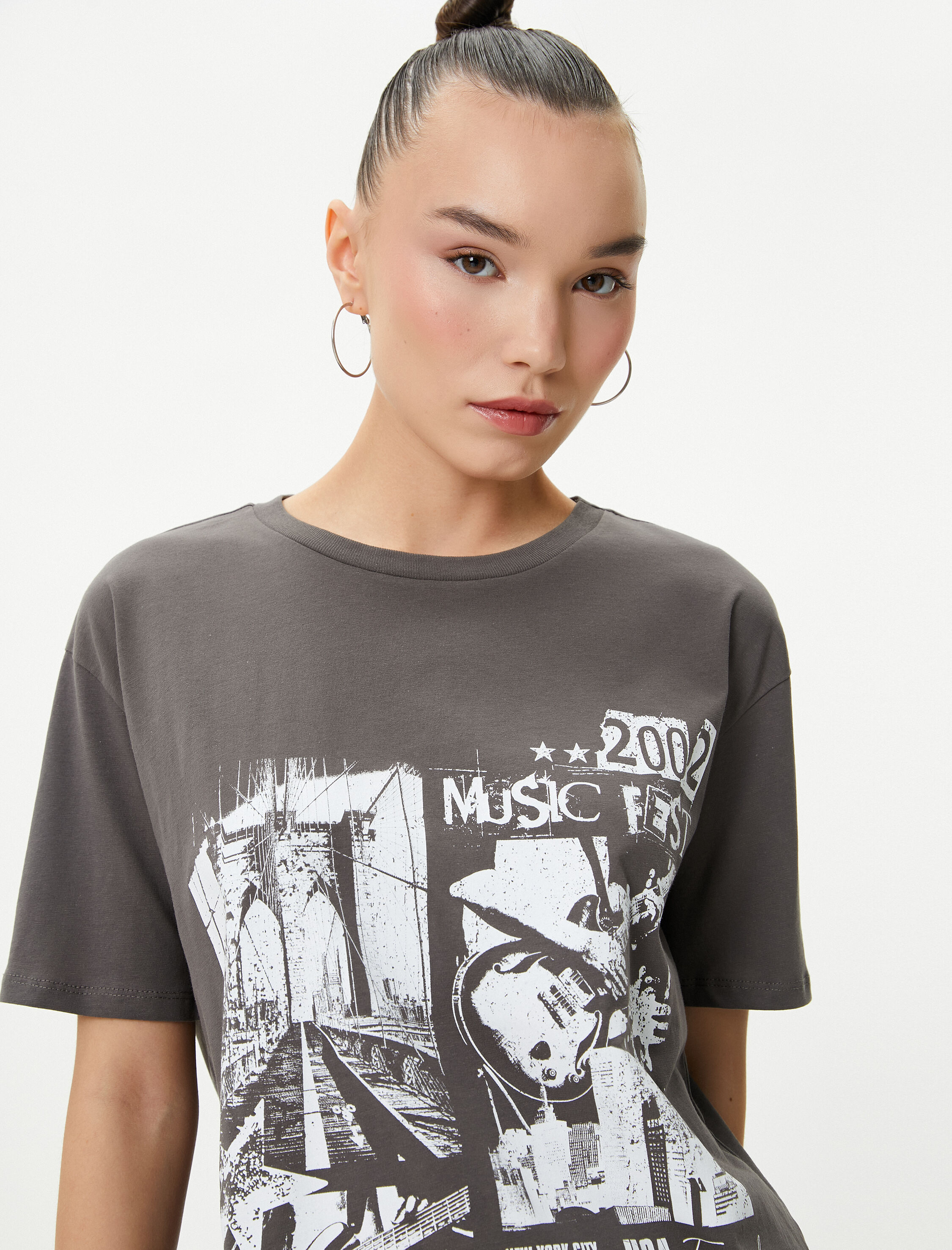 Baskılı Tişört Kısa Kollu Bisiklet Yaka Rahat Kalıp Pamuklu
