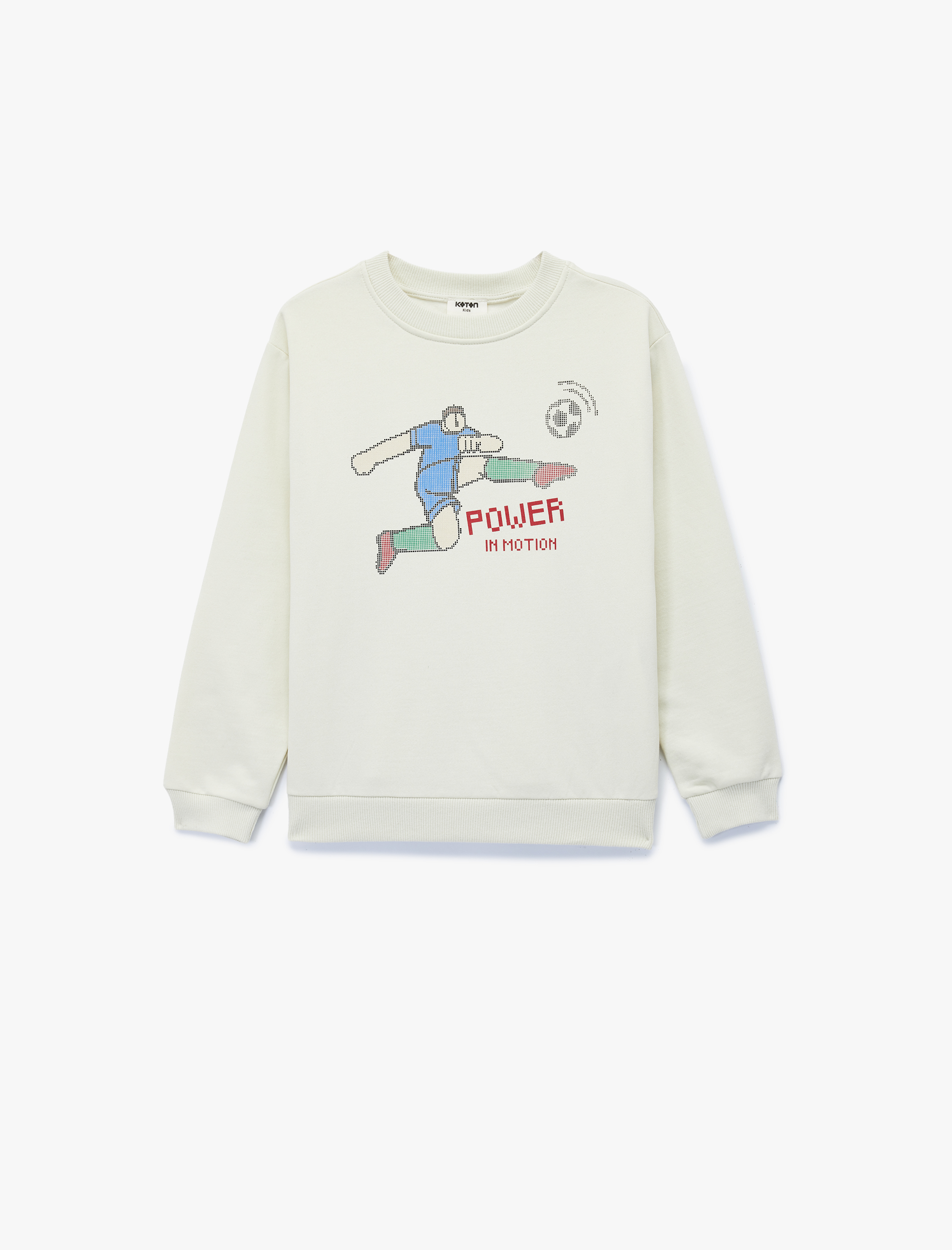 <p><p>Sweatshirt, pamuklu dokusuyla miniklerin gün boyu konforla hareket etmesine olanak tanıyor. Uzun kollu ve bisiklet yaka tasarımıyla rahat bir kullanım sağlarken, üzerinde bulunan eğlenceli futbol baskısı ile çocukların ilgisini çekiyor. Spor aktiviteler ve günlük kullanım için ideal olan sweatshirt, çocukların favori parçaları arasında yer alıyor.</p></p> <strong>Ürün Özellikleri</strong> <p>Kol Tipi: Uzun Kollu<br>Yaka Tipi: Bisiklet Yaka<br>Kumaş: %73 Pamuk, %27 Polyester<br>Kullanım Alanı: Günlük Giyim, Spor Giyim</p> <p>Koton’un rahat ve şık sweatshirt modelleriyle çocuklarınız her an enerji dolu! Eğlenceli baskıları ve konforlu yapısıyla bu sweatshirt, Koton çocuk koleksiyonunda miniklerin favorisi olacak!</p> <p>Respect Life - Yaşama Saygı | Bu ürün geri dönüştürülmüş iplikten üretilmiştir. Koton'un insana ve topluma değer katma, gelecek nesillere daha yaşanılabilir bir dünya bırakma duyarlılığıyla hazırladığı koleksiyonu keşfedin.</p>