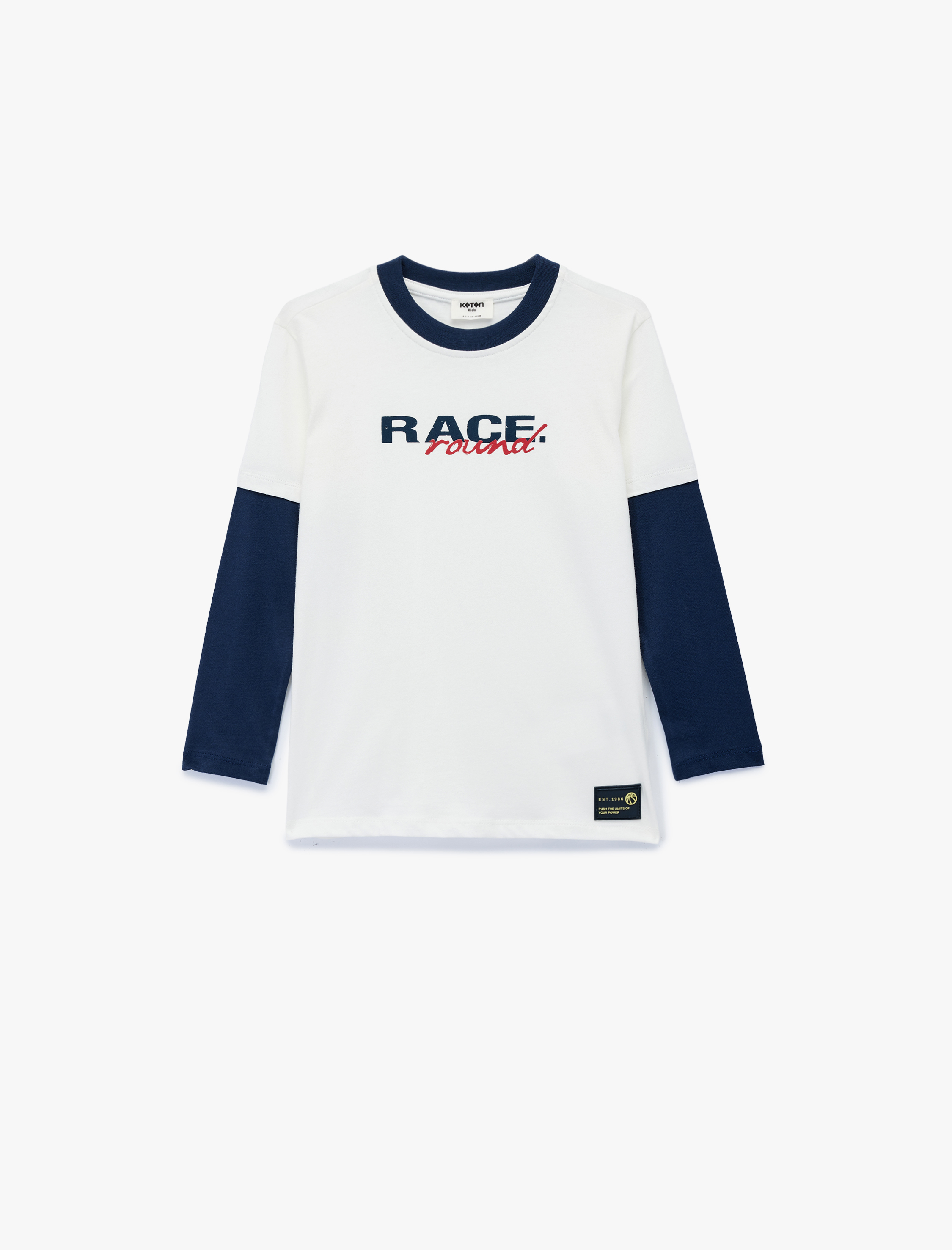 Erkek Çocuk Baskılı Uzun Kollu Bisiklet Yaka Pamuklu Tişört