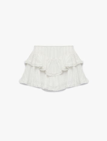 Slim Fit Astarlı Fistolu Brode Detaylı Fırfırlı Mini Etek Sepete Ekle