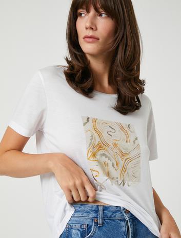 Baskılı Tişört Kısa Kollu Bisiklet Yaka Pamuklu Biye Detaylı