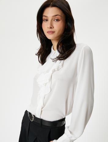 Fisto Gömlek Uzun Kollu Düğmeli Hakim Yaka Fırfırlı Pamuklu