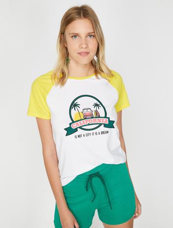 Bisiklet Yaka Kısa Kollu Baskılı Tişört Sepete Ekle