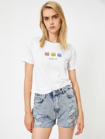 Bisiklet Yaka Kısa Kollu Baskılı Tişört Sepete Ekle