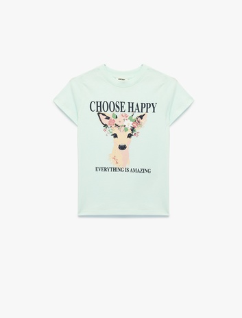 Bisiklet Yaka Kısa Kollu Pamuklu Baskılı Tişört Sepete Ekle