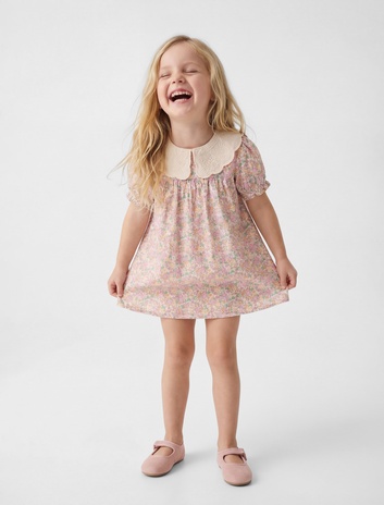 Pamuklu Kısa Kollu A Kesim Bebe Yaka Çiçekli Elbise Sepete Ekle