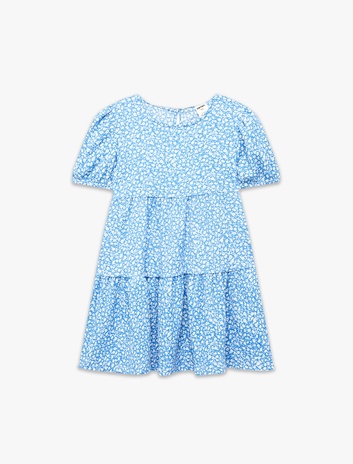 Balon Kollu Bisiklet Yaka Kat Detaylı Çiçekli Elbise Sepete Ekle