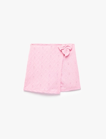 Fiyonk Detaylı Brodeli Şort Etek Sepete Ekle