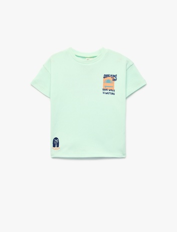 Pamuklu Kısa Kollu Bisiklet Yaka Baskılı Tişört Sepete Ekle