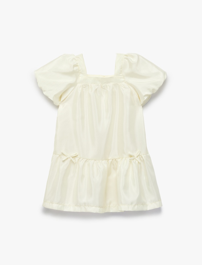 Kız Bebek Kare Yaka Fırfırlı Fiyonk Detaylı Kısa Kollu Elbise