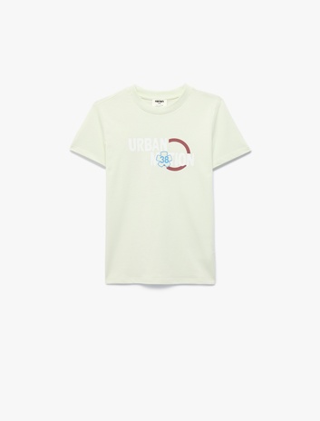 Pamuklu Kısa Kollu Bisiklet Yaka Baskılı Tişört Sepete Ekle