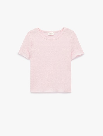Pamuklu Kısa Kollu Bisiklet Yaka Nakışlı Tişört Sepete Ekle