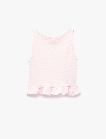 Kız Çocuk Bisiklet Yaka Kolsuz Fırfır Detaylı Bluz