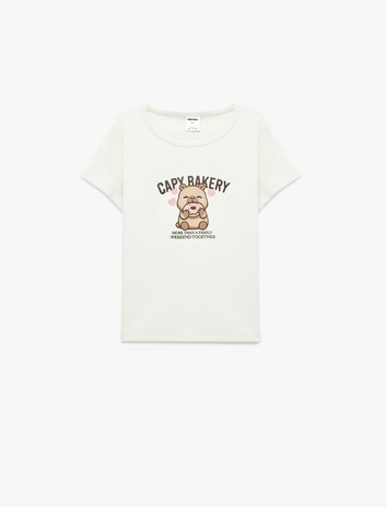 Kız Bebek Bisiklet Yaka Kısa Kollu Pamuklu Baskılı Tişört