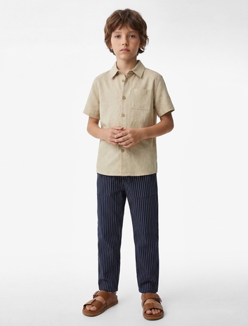 Erkek Çocuk Cepli Düğmeli Klasik Yaka Keten ve Viskon Karışımlı Kısa Kollu Gömlek
