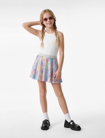 Kız Çocuk Beli Lastikli Pullu Payetli Kloş Mini Etek