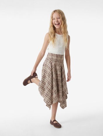 Kız Çocuk Viskon Krinkıl Kumaş Dokulu Asimetrik Kesim Ekose Etek