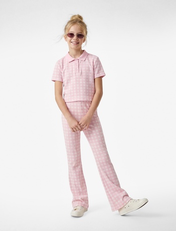 Kız Çocuk Kısa Kollu Düğmeli Polo Yaka Ekoseli Polo Yaka Tişört