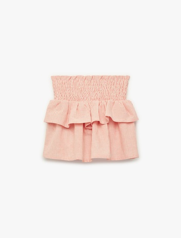 Katlı Gipeli Yüksek Bel Pamuklu Çizgili Mini Etek Sepete Ekle