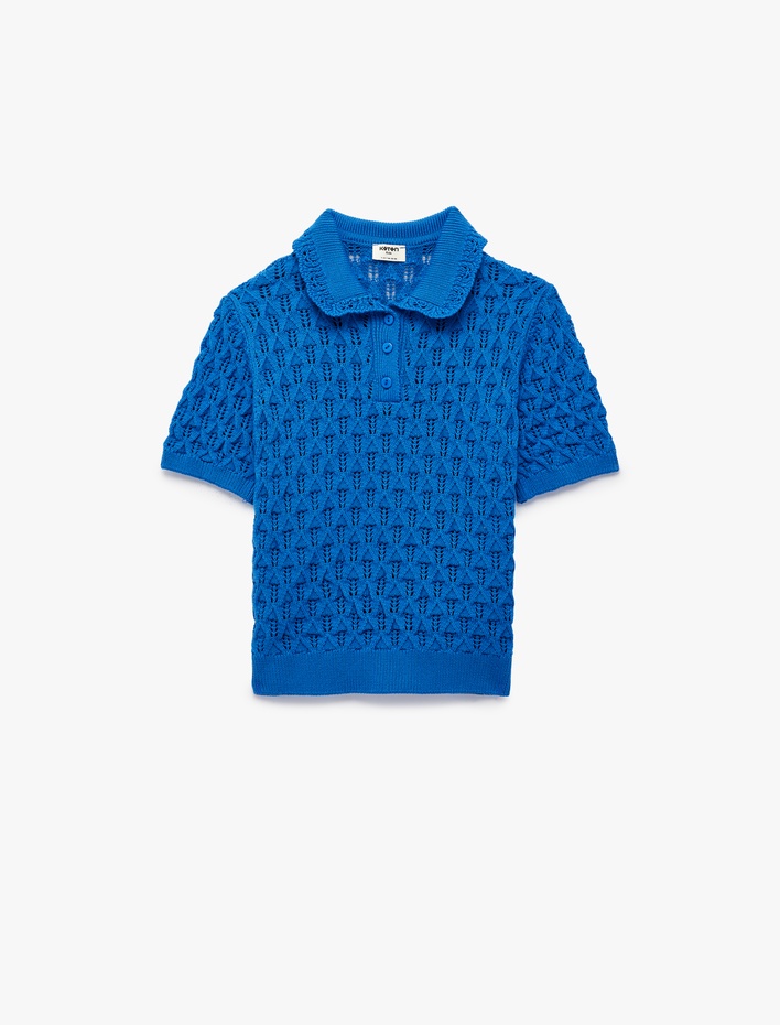 Pamuklu Kısa Kollu Gömlek Yaka Ajurlu Triko Kazak Sepete Ekle