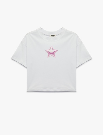 Pamuklu Bisiklet Yaka Kısa Kollu Yıldız Baskılı Tişört Sepete Ekle