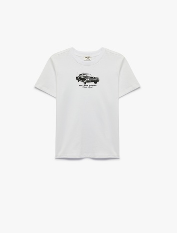 Bisiklet Yaka Kısa Kollu Pamuklu Araba Baskılı Tişört Sepete Ekle