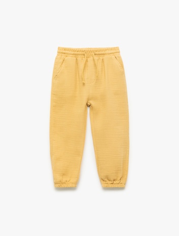 Pamuklu Beli Bağcıklı Cepli Basic Müslin Jogger Pantolon Sepete Ekle