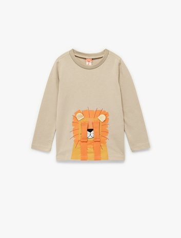 Aslan Baskılı Uzun Kollu Bisiklet Yaka Pamuklu Tişört Sepete Ekle
