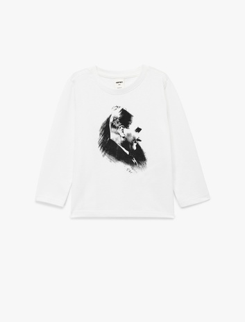 Pamuklu Uzun Kollu Bisiklet Yaka Atatürk Baskılı Tişört Sepete Ekle