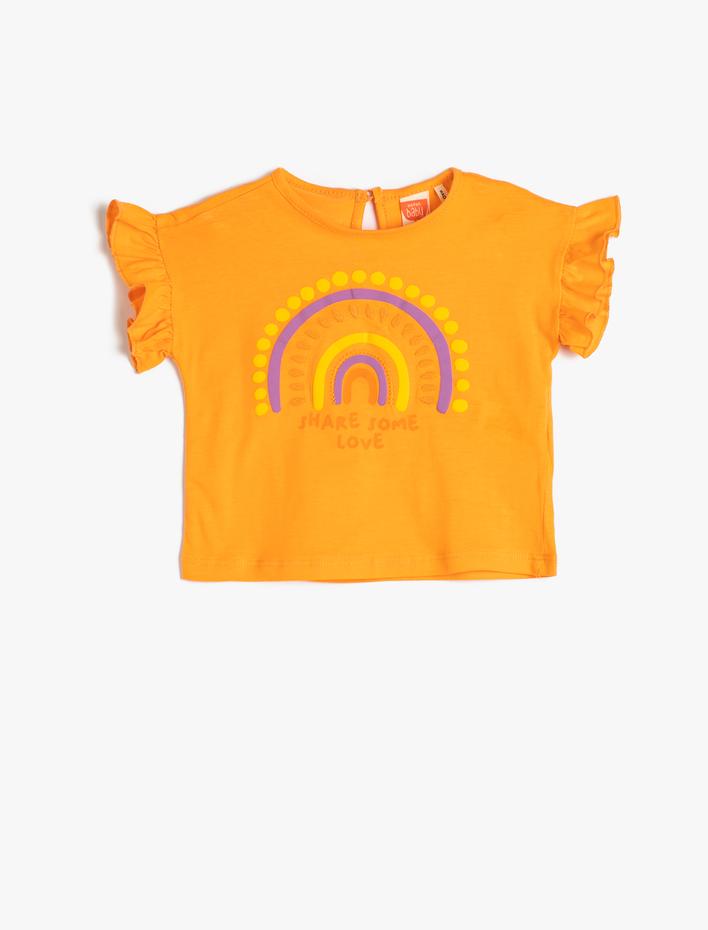 Kız Bebek Tişört Fırfırlı Kısa Kollu Bisiklet Yaka Pamuklu Gökkuşağı Baskılı