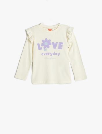 Tişört Uzun Kollu Çiçek Baskılı Fırfır Detaylı Pamuklu Sepete Ekle