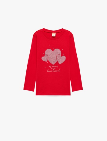 Uzun Kollu Bisiklet Yaka Pamuklu Baskılı Tişört Sepete Ekle