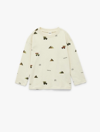 Erkek Bebek Uzun Kollu Bisiklet Yaka Baskılı Pamuklu Tişört