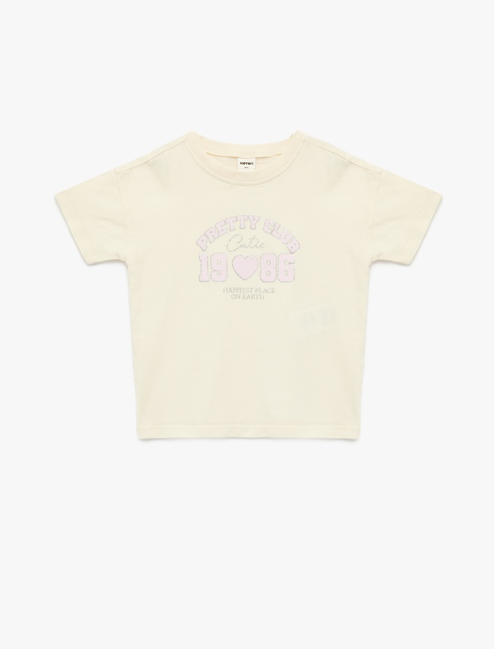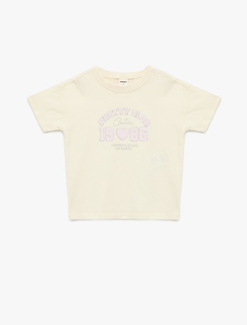 Pamuklu Kısa Kollu Bisiklet Yaka Baskılı Tişört Sepete Ekle